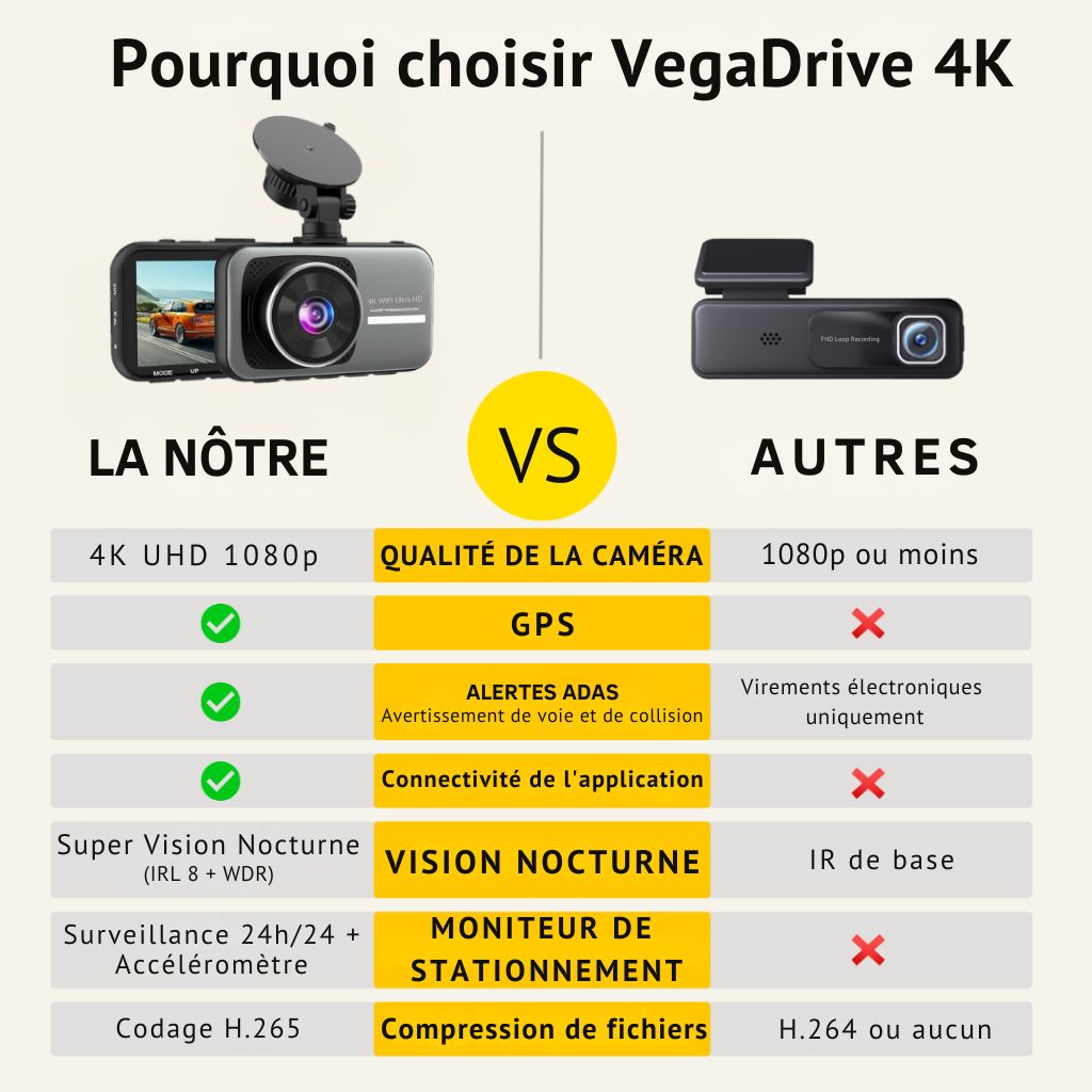 Conçue pour les conducteurs modernes, la VegaDrive 4K va au-delà de l’enregistrement basique pour offrir une clarté inégalée, des fonctionnalités de sécurité intelligentes et une connectivité fluide. De sa vidéo 4K UHD ultra nette aux alertes ADAS intelligentes et au suivi GPS intégré, chaque composant est optimisé pour la performance et la tranquillité d’esprit. Que vous naviguiez dans les rues de la ville ou que vous soyez garé toute la nuit, la VegaDrive ne se contente pas d’enregistrer — elle protège.